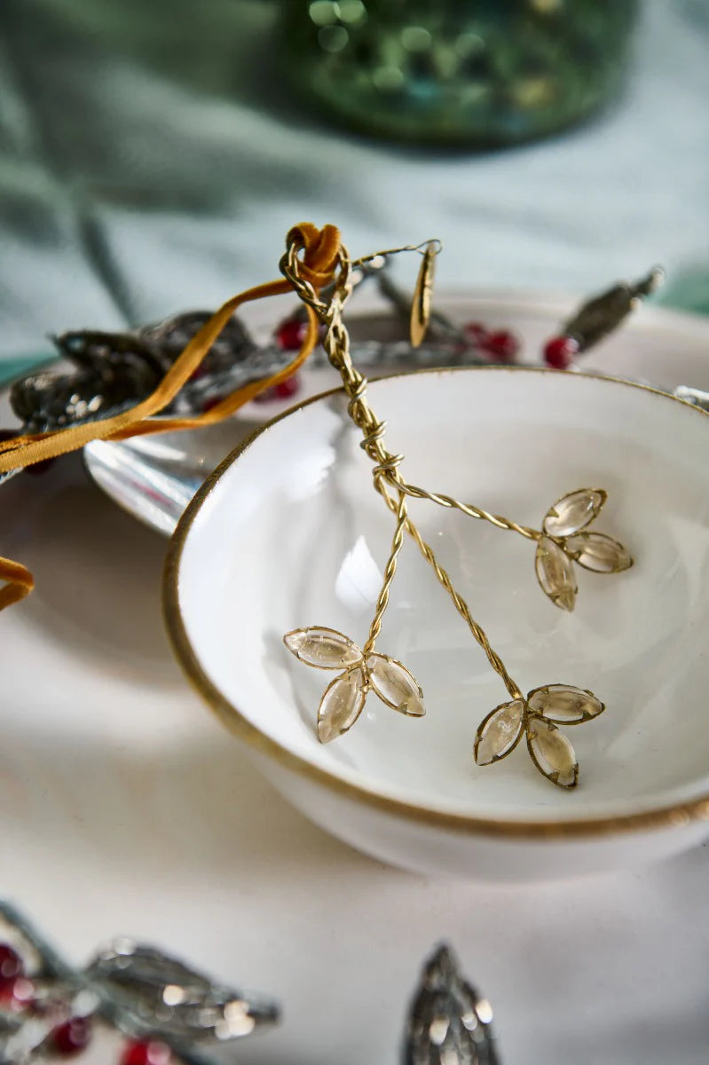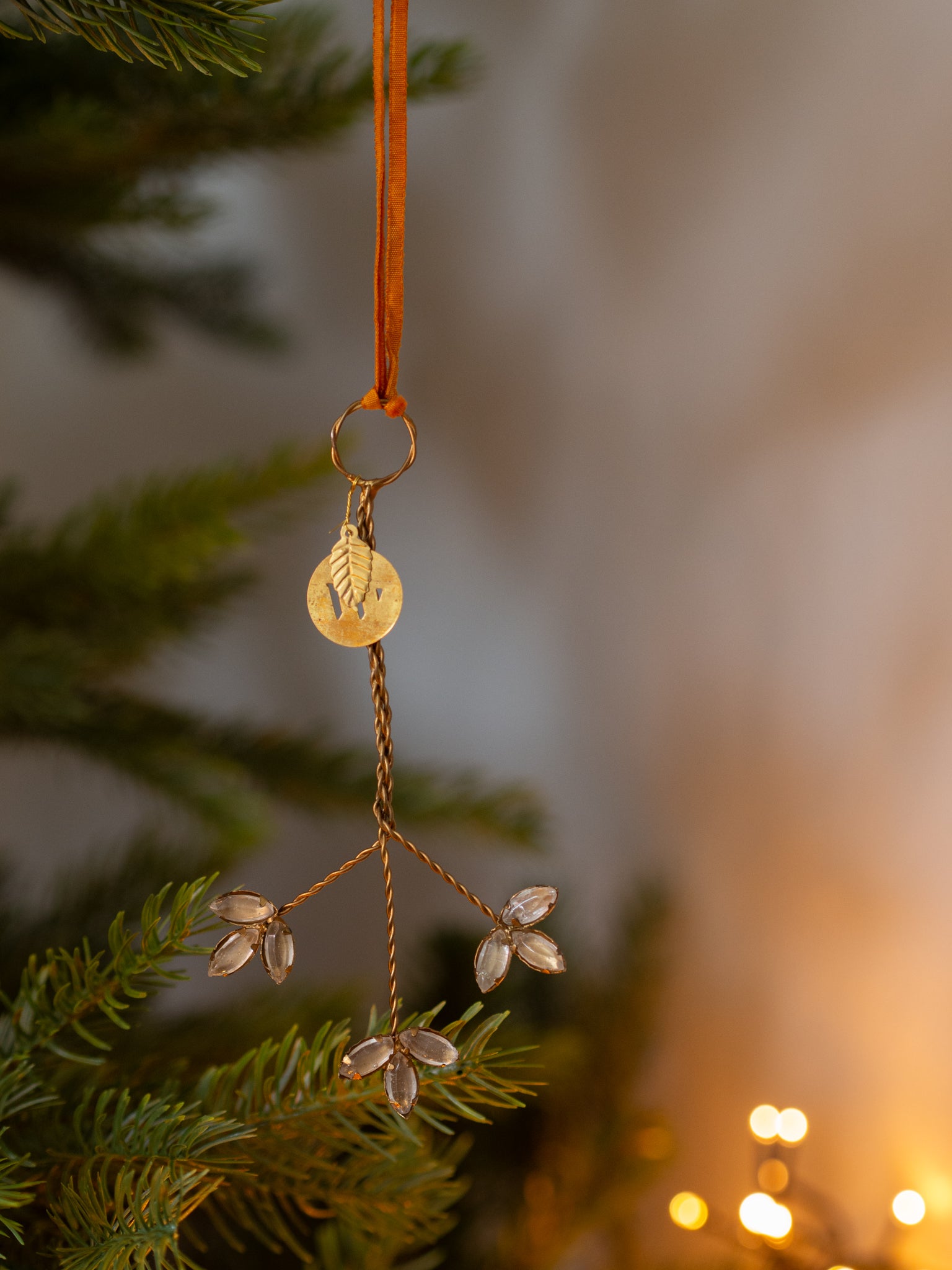 Prachtige gouden hanger in de vorm van een blad met mooie neutrale steentjes.