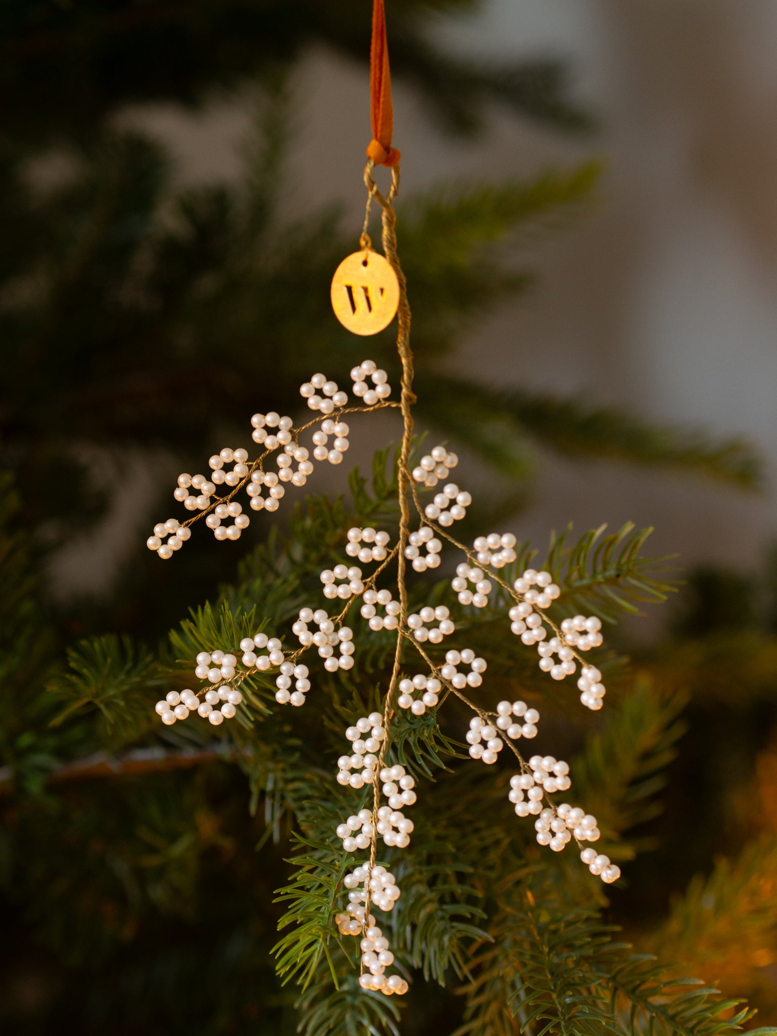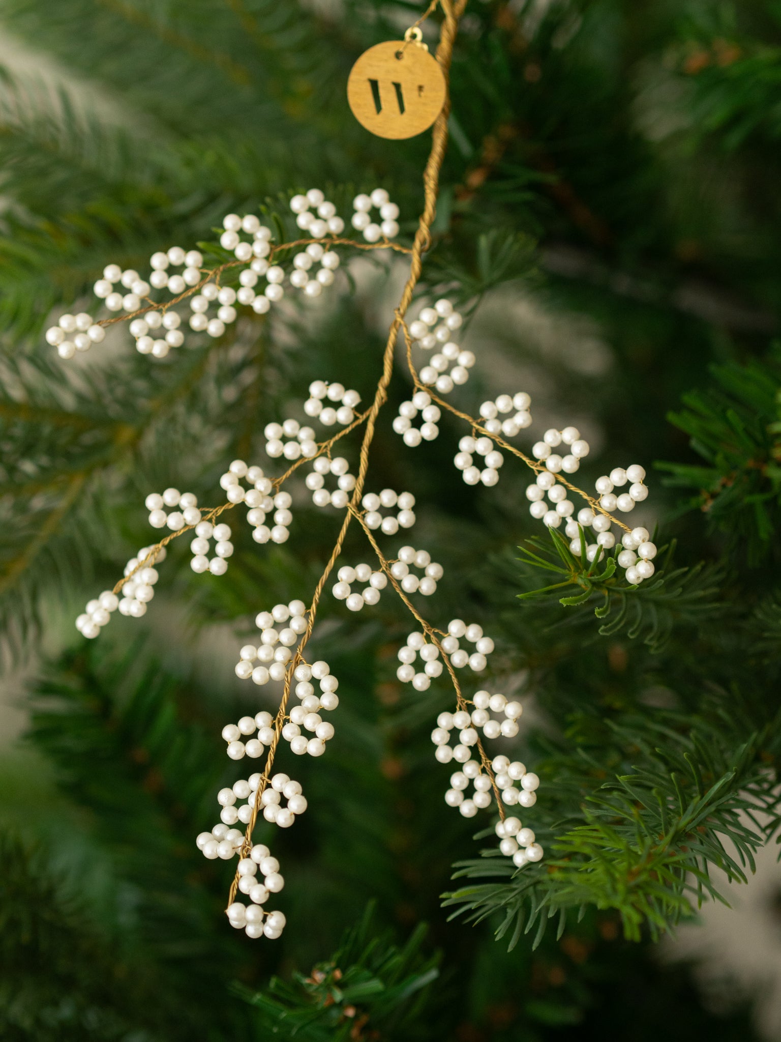 Prachtige gouden hanger met witte kraaltjes. Super leuk om op te hangen maar het kan ook mooi neergelegd worden.