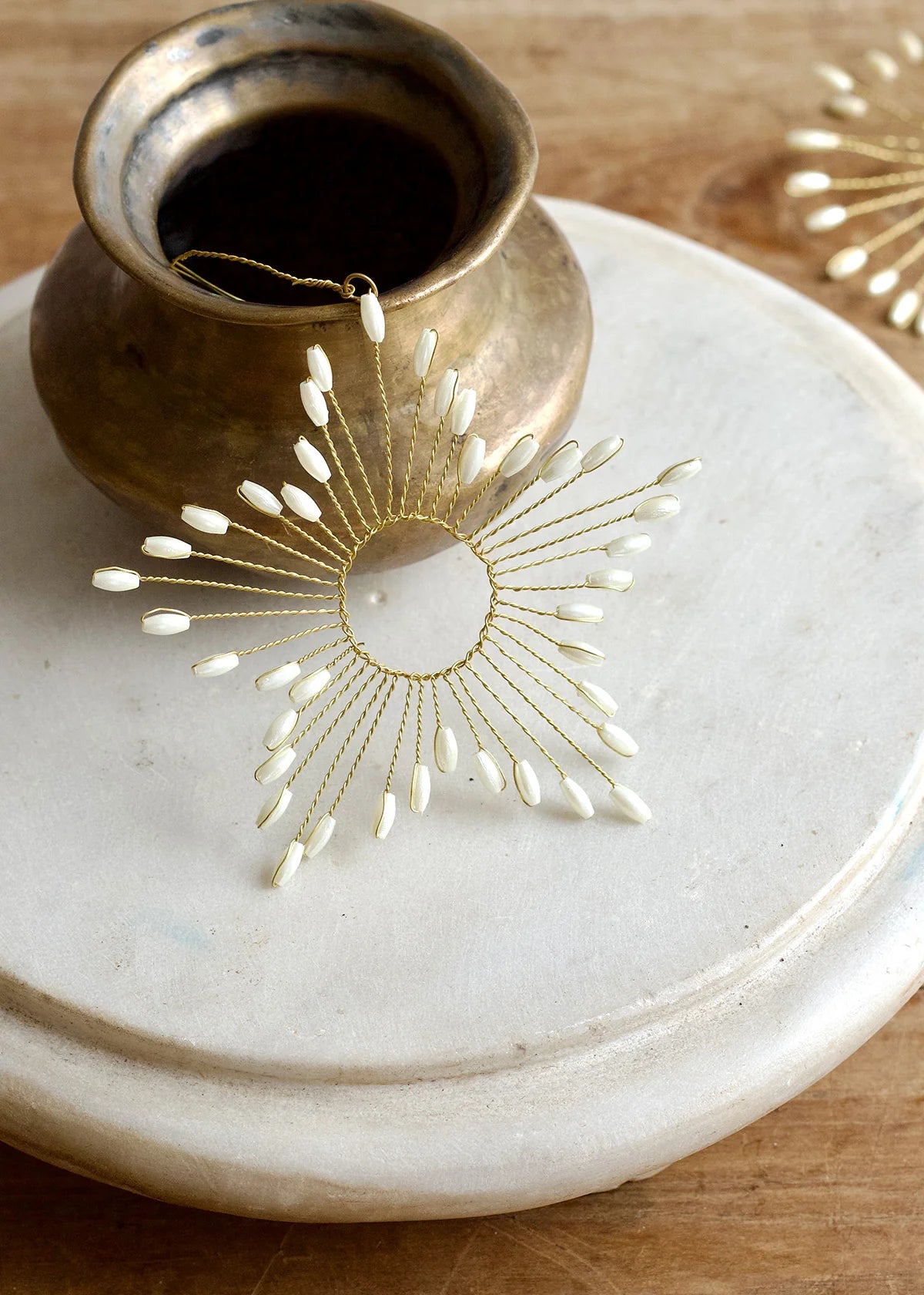 Prachtige handgemaakte hanger in de vorm van een ster met goud en pareltjes. Niet alleen mooi voor de kerst, maar eigenlijk altijd!