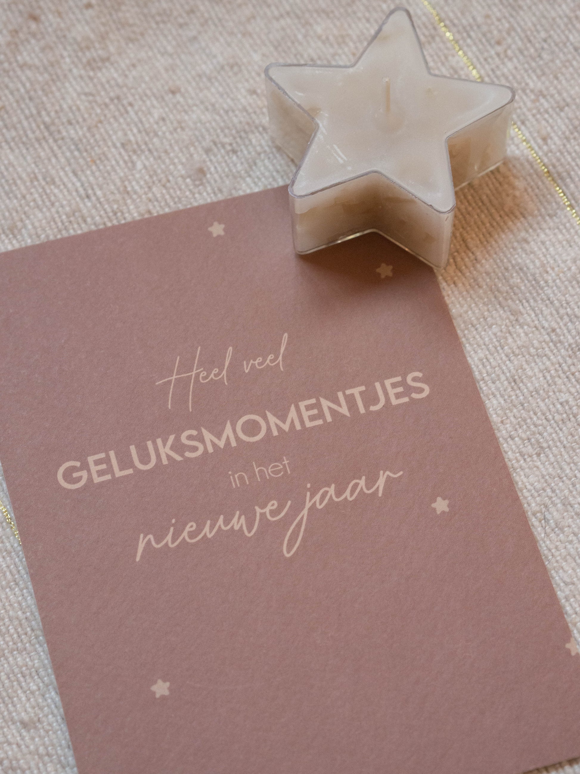 Stuur je collega's, klanten, vrienden of familieleden dit kaartje + kaarsje en wens ze veel geluksmomentjes voor in het nieuwe jaar.