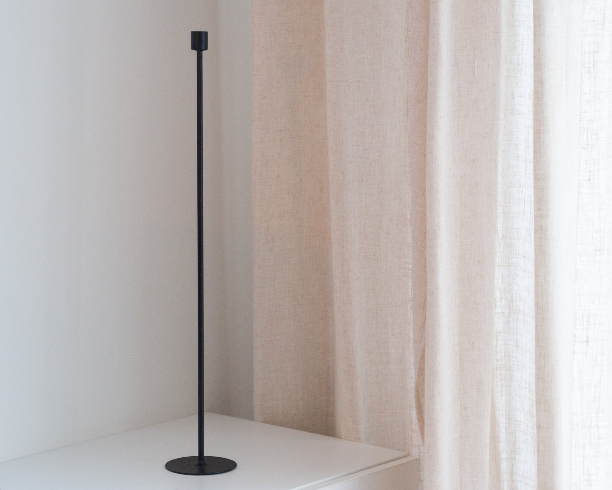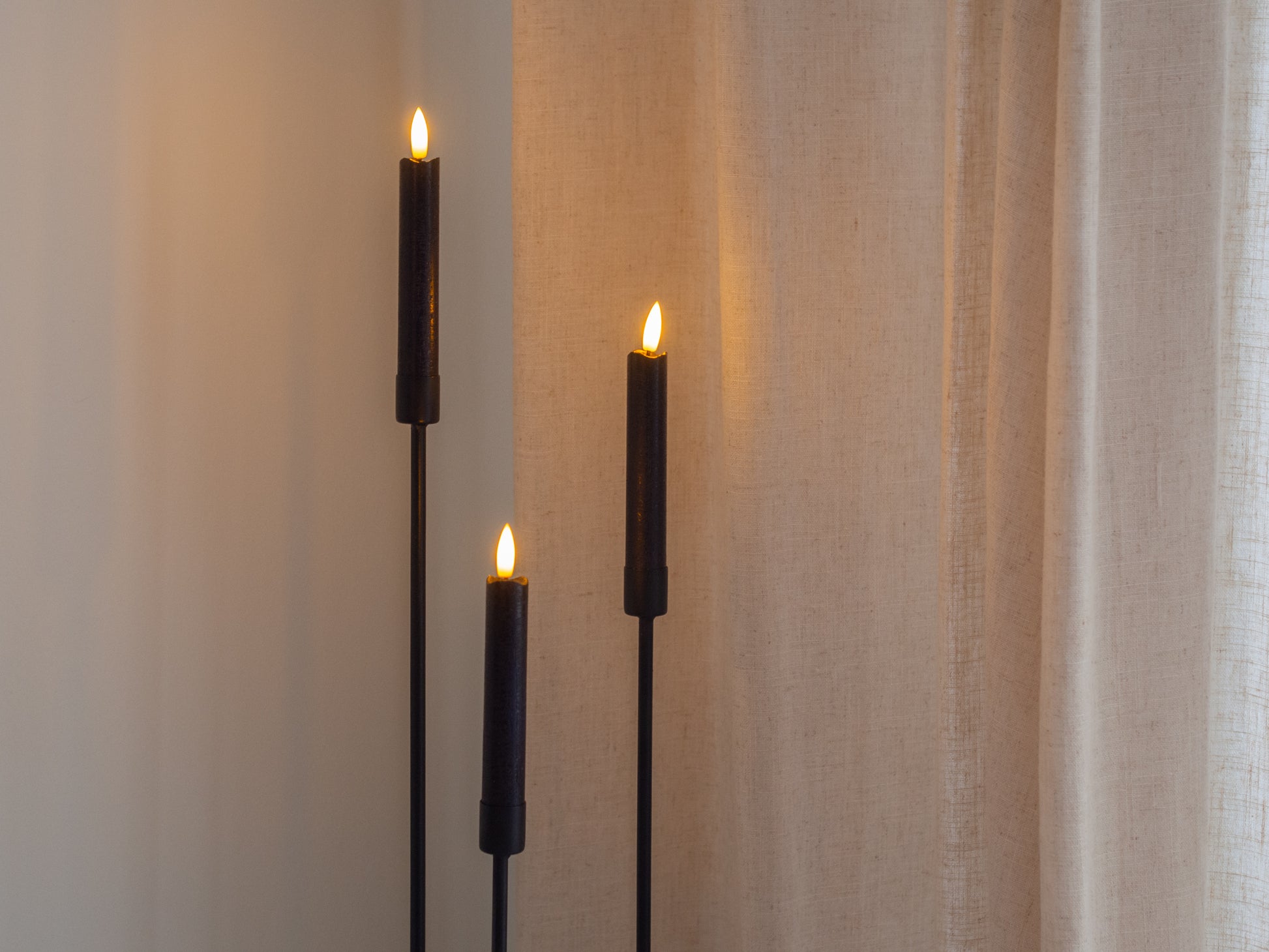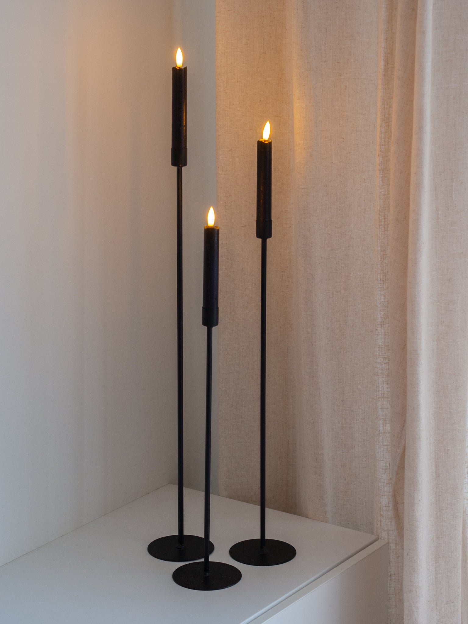Zwarte tijdloze kandelaren. Combineer ze met elkaar of met een mooie vaas. Daarnaast zijn de kandelaren op de foto gecombineerd met zwarte led kaarsen, super mooi! Deze shop je ook bij Faas Essentials.