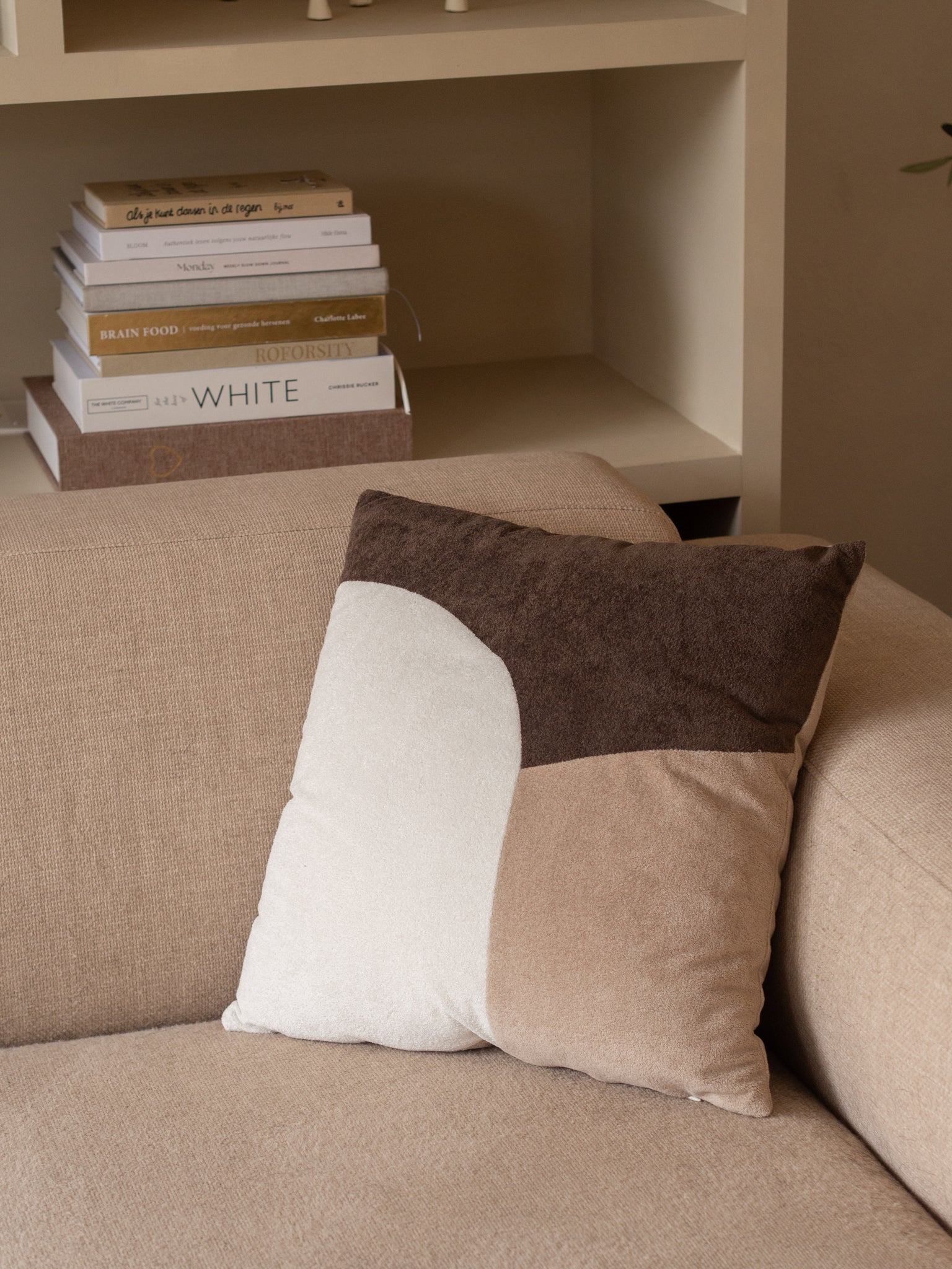 Maak jouw bank of stoel gezellig met dit mooie kussen in warme tinten.
