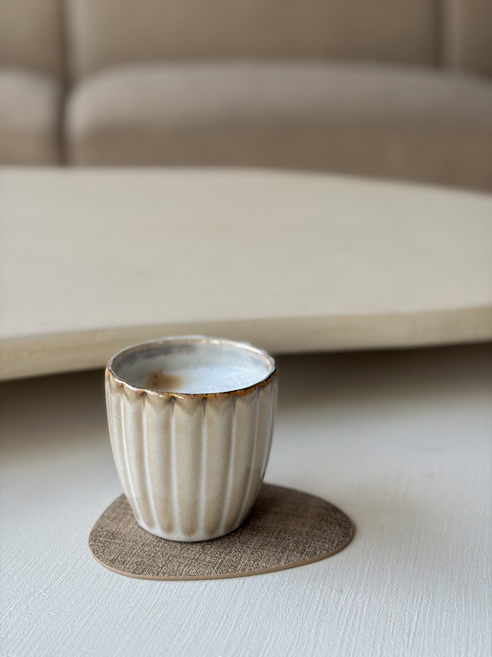 Ideale mok voor een koffie of cappuccino. De mok heeft een mooie warm beige tint met een ribbeltje. Het handige aan deze mok is dat ze stapelbaar zijn.