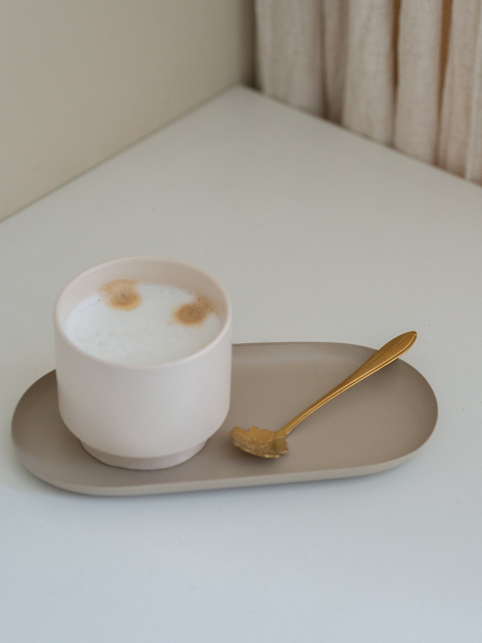 Mooi serveerplankje in een warme zand tint gemaakt van metaal.
