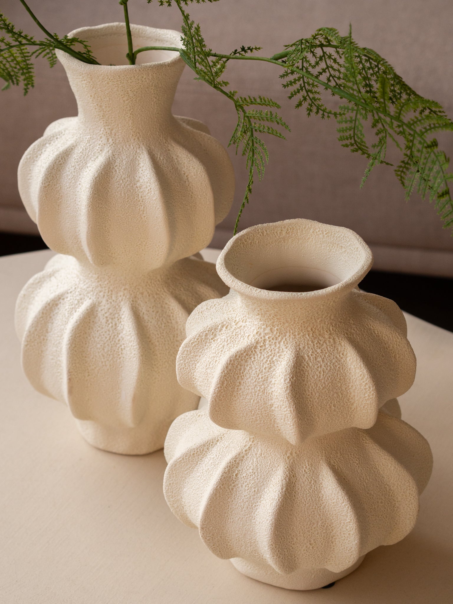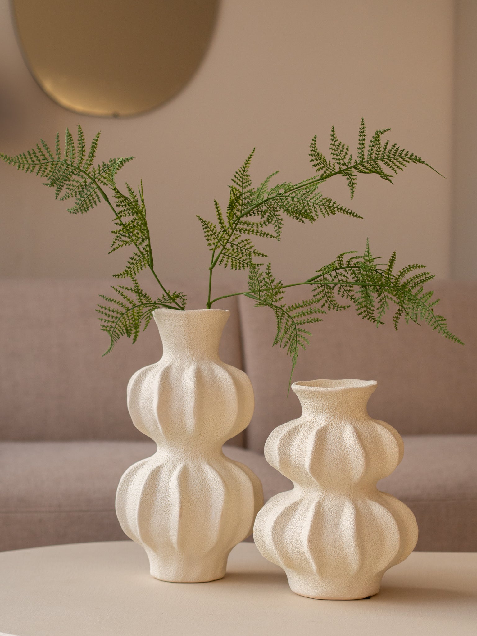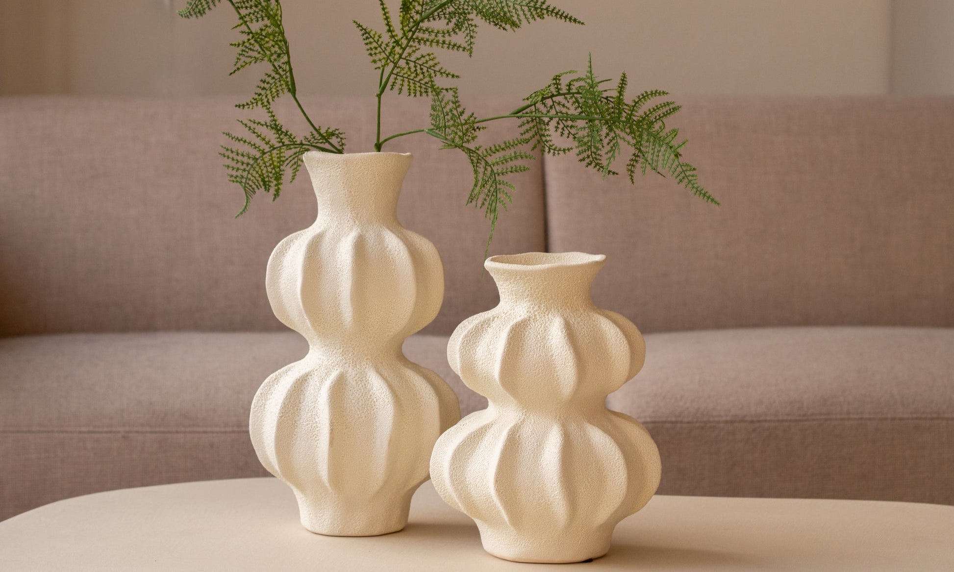 Prachtige organische vazen die helemaal passen bij de Japandi stijl. Combineer ze met een groene zijdentak en je hebt een prachtig geheel.