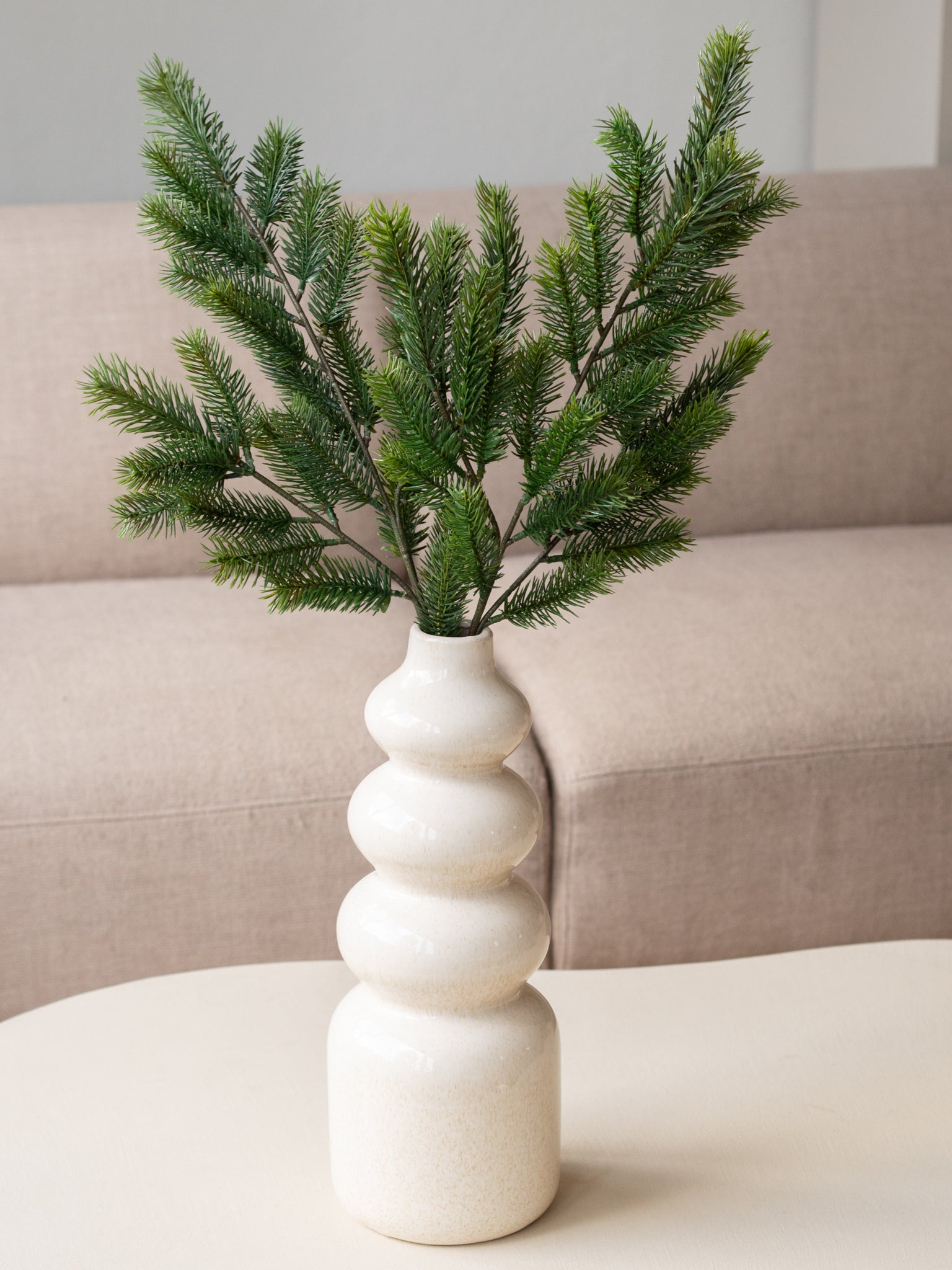 Mooie dennentakken in een fris groene kleur! Stijl ze in een mooie vaas met een paar mooie hangers en je hebt een gezellig sfeertje.